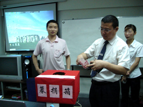 此時(shí),我們必需團(tuán)結(jié)起來,為了表達(dá)我們的愛心,我們采用了視頻與中山、江門的同事連線,讓我們大家共同為災(zāi)區(qū)的人禱告,共同來完成我們這個(gè)募捐活動(dòng)。