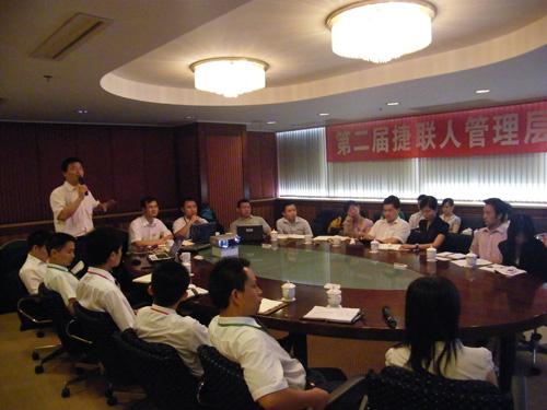 | 在火紅的七月,在美麗的岐江旁,在中山的標(biāo)志建筑---富華酒店的二樓會議室,東莞、中山、江門三地的捷聯(lián)人齊聚一堂,圍繞四個確保、十個規(guī)劃和五個提升,共同探討了如何以管理謀發(fā)展,如何用方法促業(yè)績,如何用行動實現(xiàn)我們的戰(zhàn)略目標(biāo)。 |