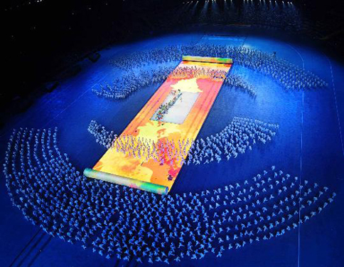 當(dāng)大型文藝表演《美麗的奧林匹克》奏響第一個(gè)音符,演出人員邁出第一個(gè)舞步,大型的看臺(tái)背景打出了第一縷光影……一個(gè)充滿神秘而又一目了然的“文化中國(guó)”便豁然展現(xiàn):你可以看見(jiàn)從甲骨文中綿延而出的中華文明,你可以隨著水墨的意境徜徉于天人合一的和諧中國(guó)哲學(xué),你可以從漫天焰火中感受中國(guó)與世界攜手向前……在這樣的時(shí)刻,在團(tuán)結(jié)、友誼、和平的奧林匹克頌歌中,全世界感受著“文化中國(guó)”。一個(gè)個(gè)具有中國(guó)民族特色的節(jié)目,帶來(lái)的視覺(jué)效果。大多數(shù)的節(jié)目都有2008各成員組成,象征著2008奧運(yùn)會(huì)。